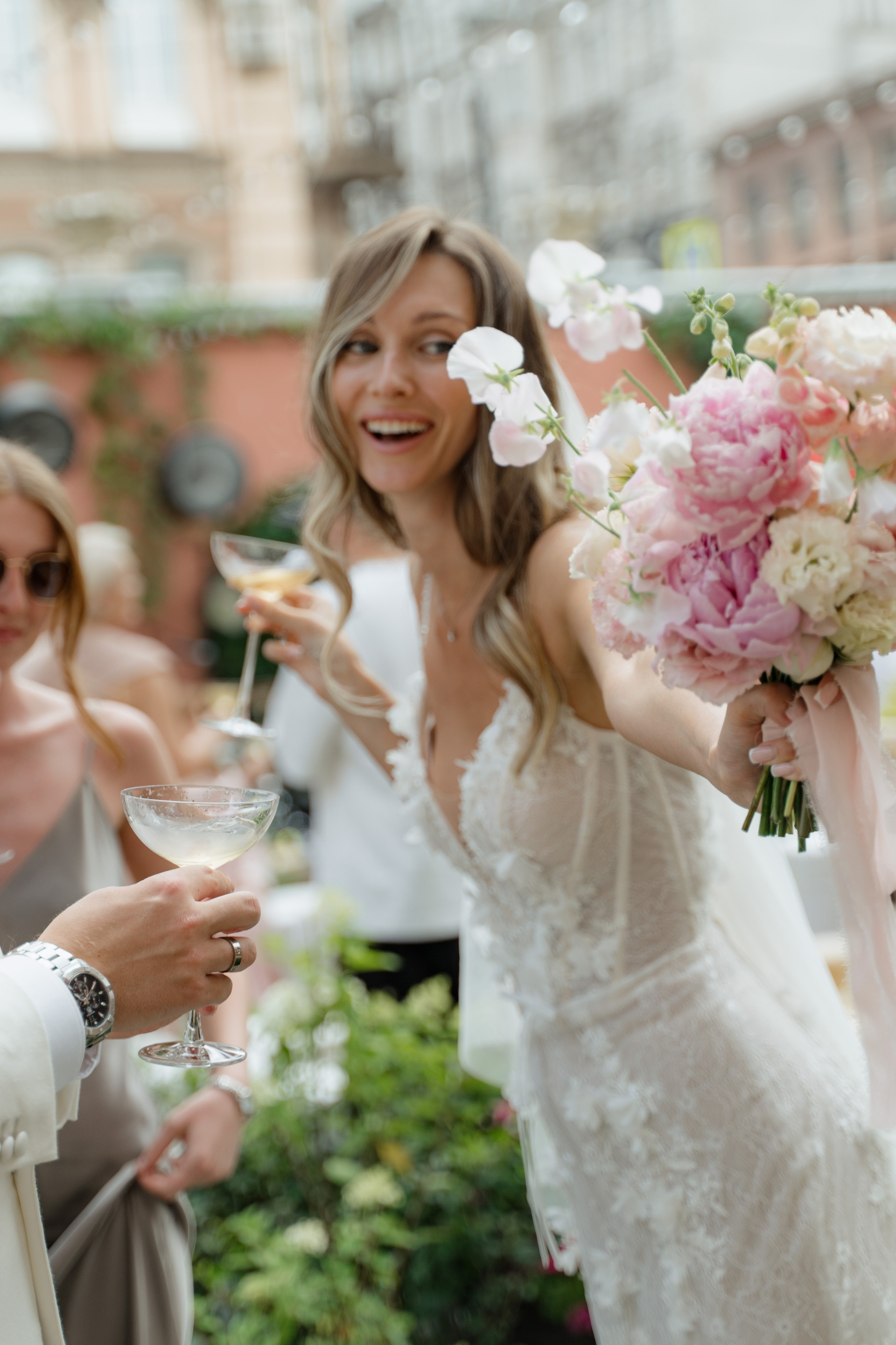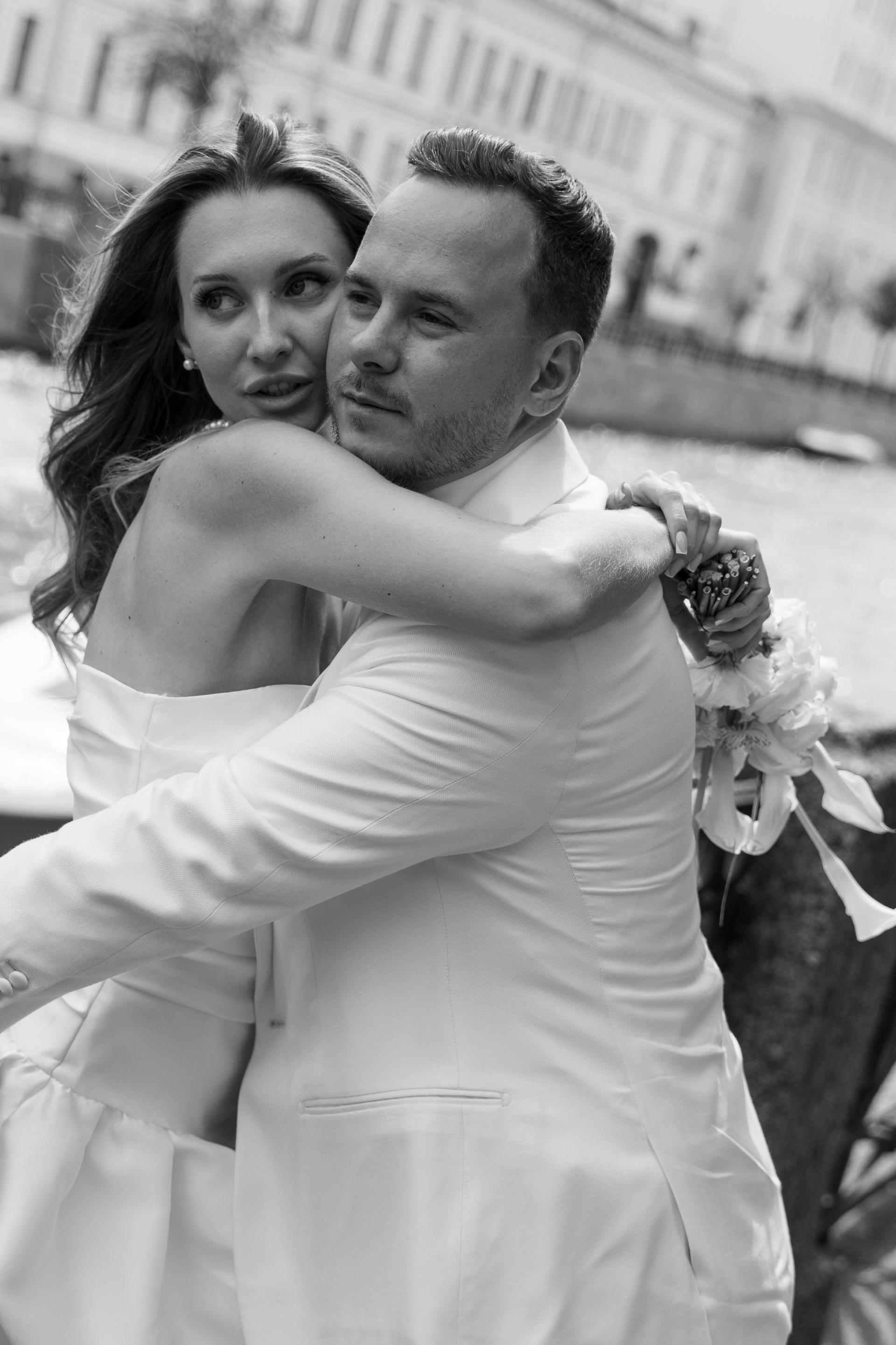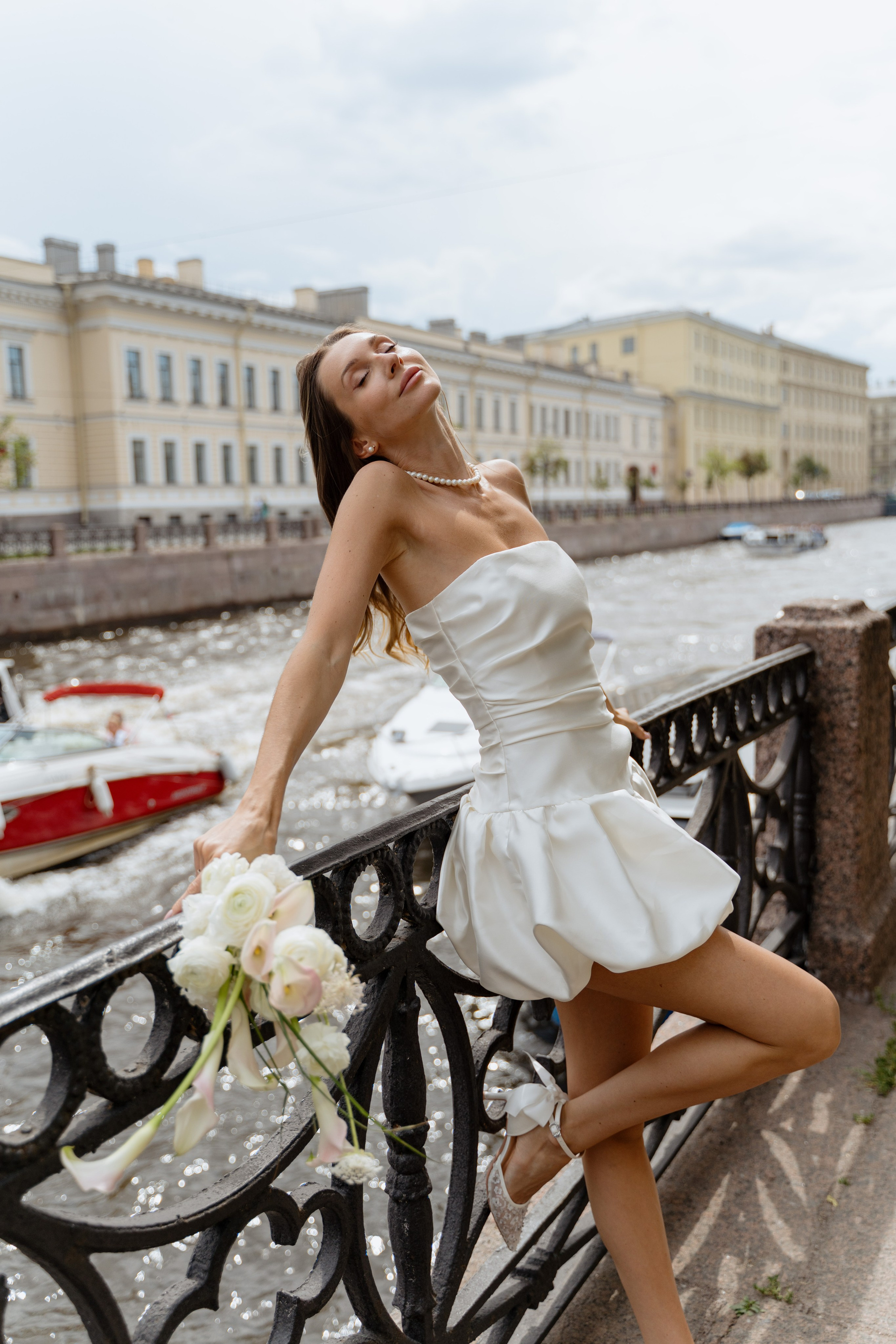 Первый день прошёл в близком кругу: как это обычно бывает — ЗАГС, прогулка, ресторан. Нам очень повезло с погодой: мы гуляли, катались на лодочке по рекам и каналам Северной Венеции, пили шампанское и много смеялись.